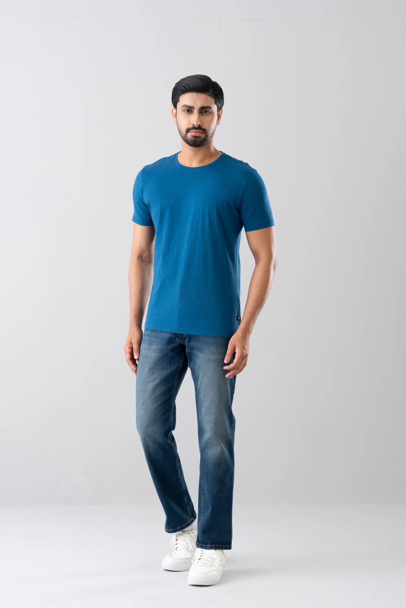 Featuring a regular fit with a comfortable crew neckline and short sleeves, this tee is ideal for casual outings, layering, or daily wear. Crafted from soft, breathable cotton fabric, it offers a smooth feel against the skin while maintaining a clean, structured look. A subtle small logo print at back neck. The minimalist design makes it a versatile staple.